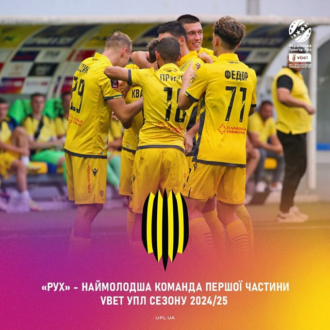 У львовского Руха – наименьший средний возраст игроков команды – 21,7 года