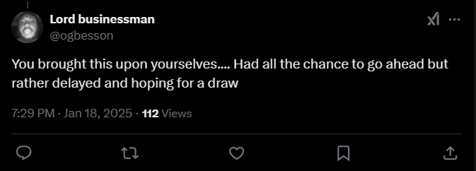 Lord businessman: «Вы сами навлекли это на себя... У вас были все шансы выйти вперед, но вы медлили и надеялись на ничью».