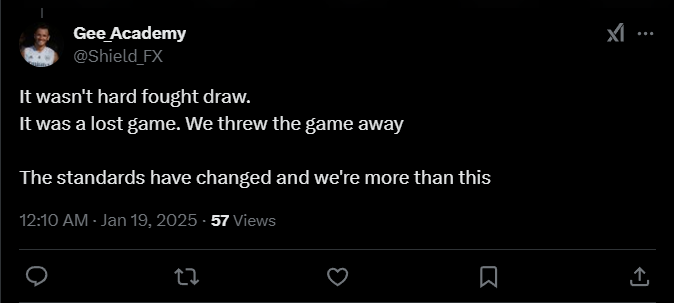 Gee_Academy: «Это была не тяжелая ничья. Это была проигранная игра. Мы выбросили игру на ветер. Стандарты изменились, и мы больше, чем это».