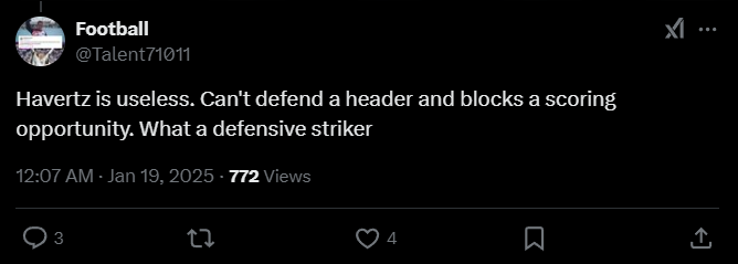 Football: «Хаверц бесполезен. Не может защитить голову и блокирует голевую возможность. Что за оборонительный нападающий».
