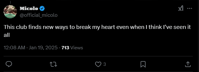 Micolo: «Этот клуб находит новые способы разбить мне сердце, даже когда мне кажется, что я уже все видел».
