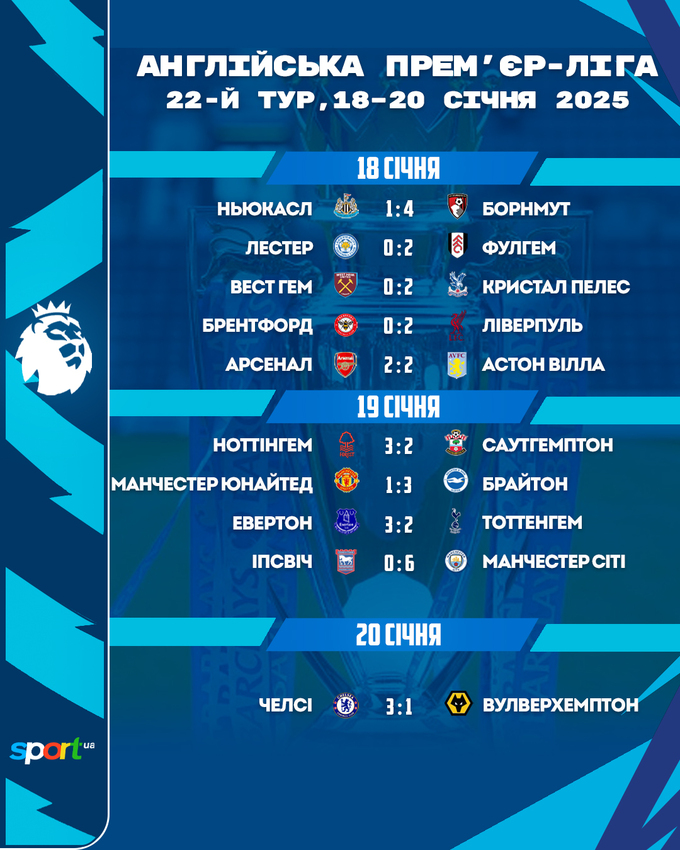 Вечером 20 января завершился 22-й тур Английской Премьер-лиги.