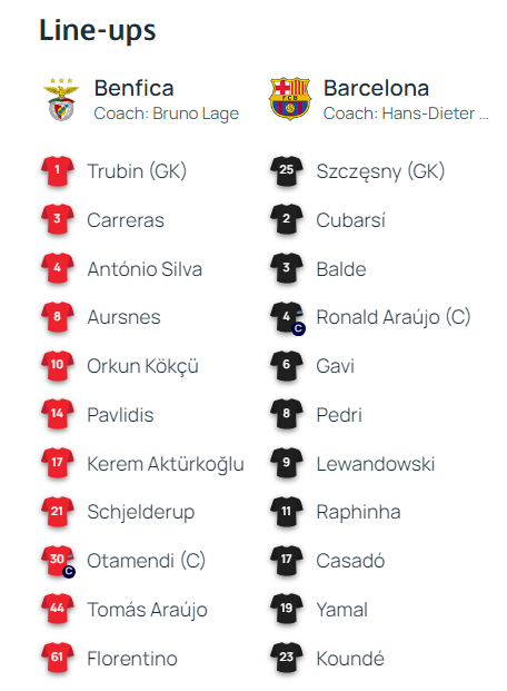 Стартовые составы на матч «Бенфика» – «Барселона»: