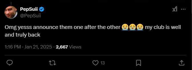 PepSuii: «О боже, дааа, анонсируйте их один за другим, мой клуб снова на высоте!».