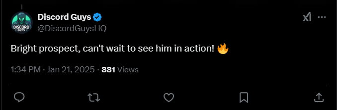 Discord Guys: «Яркий перспективный игрок, не могу дождаться, чтобы увидеть его в действии!».