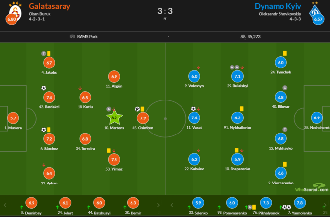 Лучшим игроком поединка стал звездный нападающий «Галатасарая» Дрис Мертенс. Его выступление WhoScored оценил в 8.2 балла.