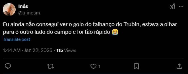 Inês: «Я все еще не мог видеть пропущенный гол Трубина, я смотрела в другую сторону поля, и всё произошло так быстро».