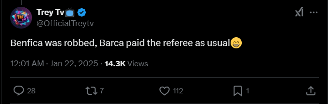 Treytv: «Бенфика» была ограблена, «Барса», как обычно, заплатила судье».