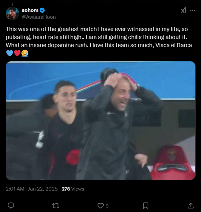 Sohom: «Это был один из величайших матчей, которые я когда-либо видел в своей жизни, настолько пульсирующий, что сердцебиение все еще высоко... У меня до сих пор мурашки по коже при мысли об этом. Какой безумный прилив дофамина. Я так люблю эту команду».