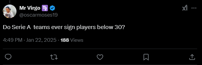 Mr Virgo: «Подписывают ли команды Серии А игроков моложе 30 лет?».