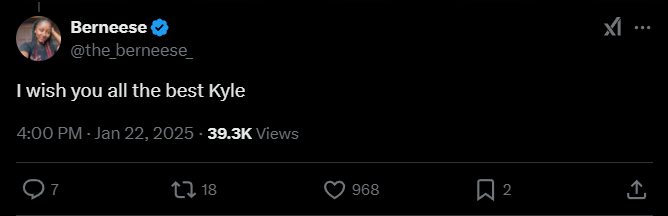 Berneese: «Желаю тебе всего наилучшего, Кайл».
