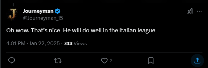 Journeyman: «Ух ты. Это здорово. Он будет хорош в чемпионате Италии».