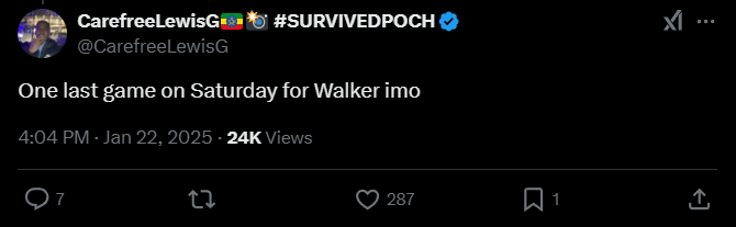CarefreeLewisG: «Последняя игра для Уокера в субботу».