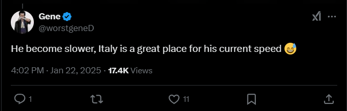 Gene: «Он становится медленнее, Италия - отличное место для его нынешней скорости».