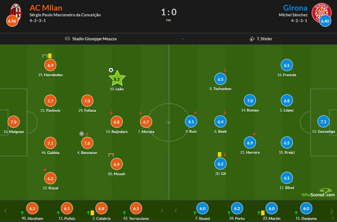 Оценки матча «Милан» – «Жирона» от WhoScored