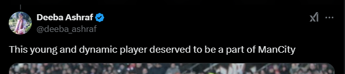 Deeba Ashraf: «Этот молодой и динамичный игрок заслуживает того, чтобы стать частью «Манчестер Сити».