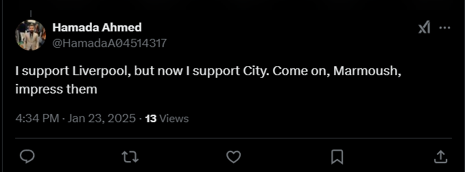 Hamada Ahmed: «Я болею за «Ливерпуль», но теперь я болею за «Сити». Давай, Мармуш, произведи на них впечатление».