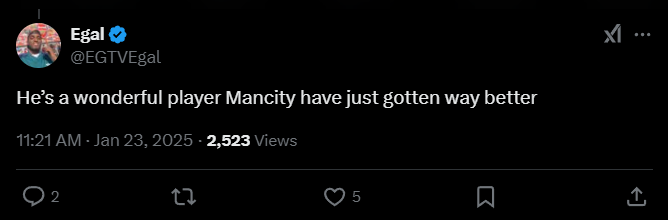 Egal: «Он прекрасный игрок, «Манчестер Сити» станет намного лучше».