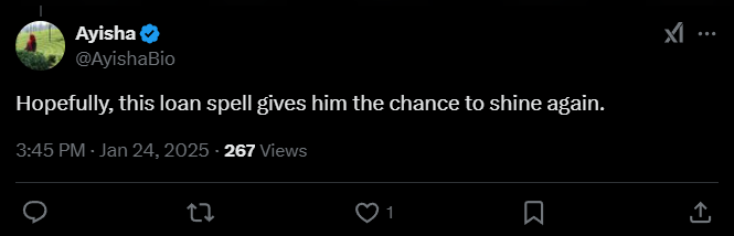 Ayisha: «Будем надеяться, что эта аренда даст ему шанс снова засиять».