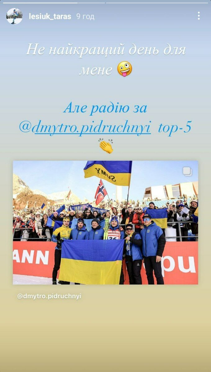 Но радуюсь за Дмитрия Пидручного в топ-5», – написал Тарас в сторис.
