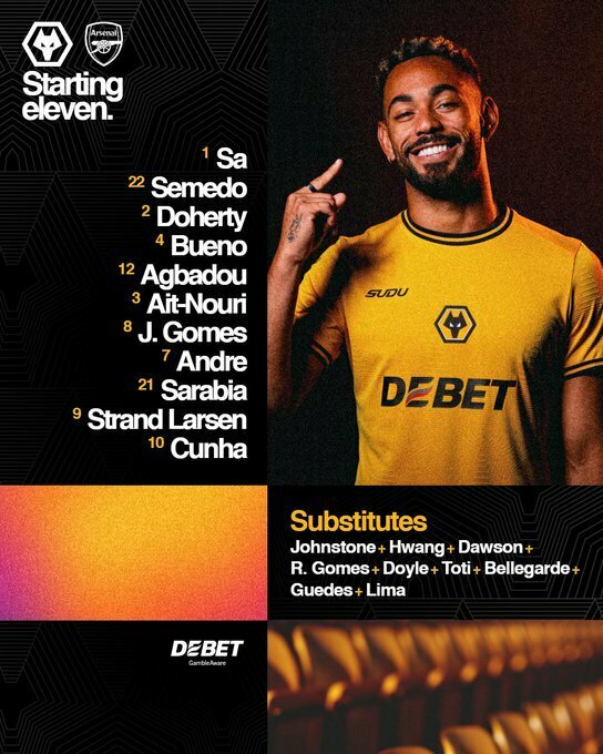 Стартовые составы на матч «Вулверхэмптон» – «Арсенал»: