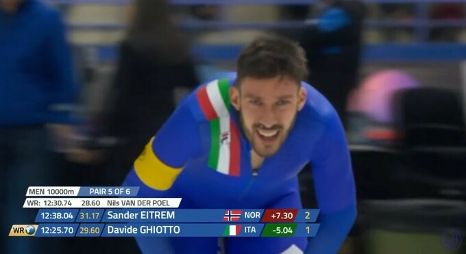 Итальянский конькобежец Давиде Гьотто установил новый мировой рекорд на дистанции 10000 метров.