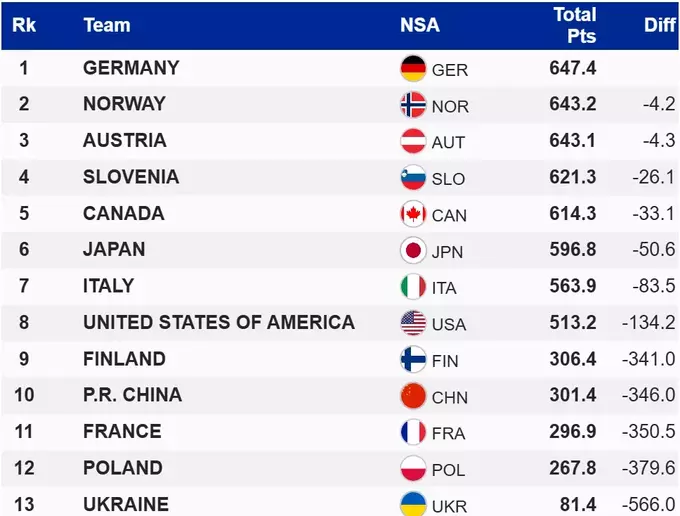 Победу в турнире отпраздновала сборная Германии, которую удалось одержать 647.4 балла. Позади остался норвежский и австрийский дуэты, которые расположились на второй и третьей позициях соответственно.