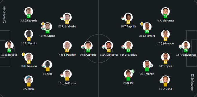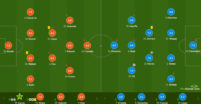 Украинский вингер «Жироны» Виктор Цыганков появился на поле на 79-й минуте, результативными действиями не отметился. Статистический портал SofaScore оценил игру украинца в 6.6 балла из 10 возможных, WhoScored дал Виктору 6.1 балла. Лучшим игроком матча по версии SofaScore был признан нападающий «Райо» Ранди Нтека, оформивший дубль. Он получил оценку 8.4 балла. Лучшим по версии WhoScored стал Альваро Гарсия с оценкой 8.0. На его счету 2 ассиста.