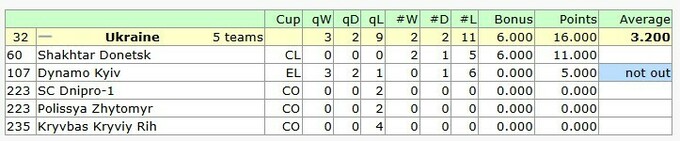 Таблица коэффициентов. Чемпион Украины будет стартовать с 1-го раунда ЛЧ