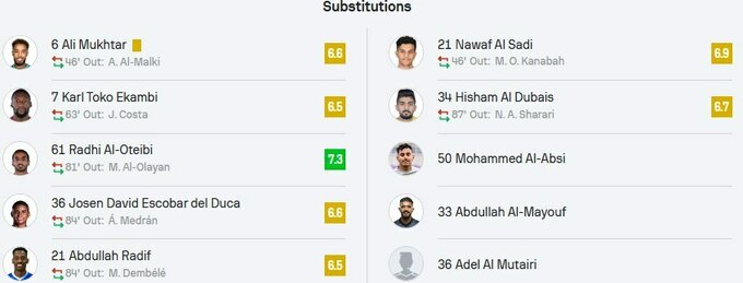 В этом поединке за «Аль-Шабаб» дебютировал украинский голкипер Георгий Бущан, который сумел отбить четыре удара из семи. Статистический портал Sofascore оценил игру вратаря 7,0.