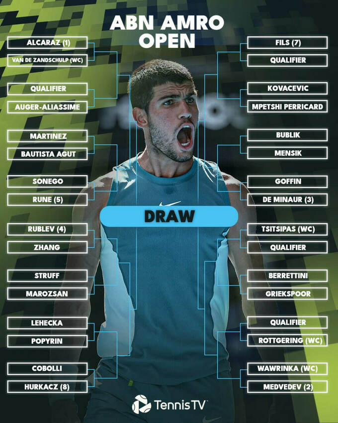 Первым номером посева в Роттердаме является Карлос Алькарас из Испании. В 1-м раунде он сыграет против обладателя wild card Ботик ван де Зандсхульп.