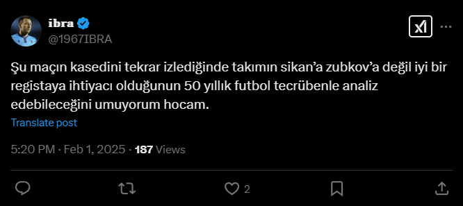 IBRA: «Надеюсь, что после того, как пересмотришь запись этого матча, с 50-летним опытом в футболе ты сможешь проанализировать, что команде не нужны Сикан и Зубков, а нужен хороший полузащитник».