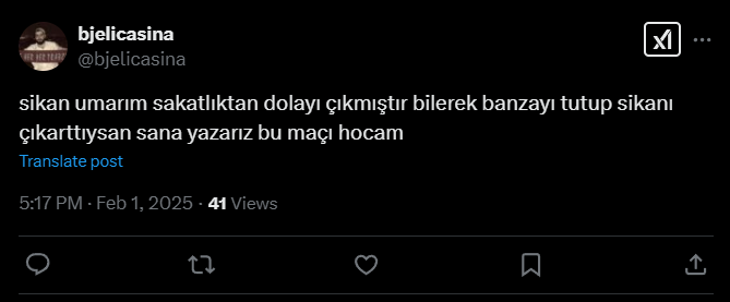 Tan serhat: «Я думаю, что на его месте должен играть Банза, у команды нет полузащиты, мяч не доходит до игроков».