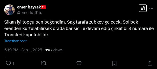 Omer bayrak: «Сикан хороший игрок, мне он понравился. Справа придет Зубков. Если избавимся от левого защитника Эрена, можно продолжить с Баришичем на этой позиции и закрыть трансфером полузащитника».