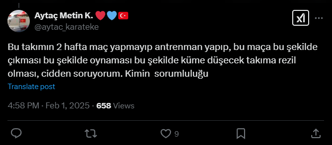 Aytaç Metin K: «Команда, два недели не играя, занимаясь только тренировками, выходит на этот матч и играет так, как будто команда будет вылетать в низший дивизион, позор».