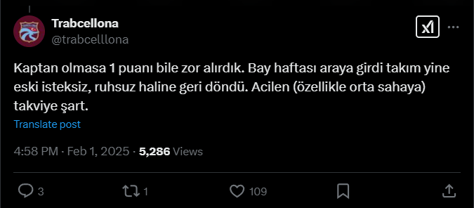 Фанаты «Трабзонспора», несмотря на неполный дебют Сикана из-за травмы, все же поддержали его. Однако они считают, что даже с приходом Зубкова команде срочно нужен полузащитник.