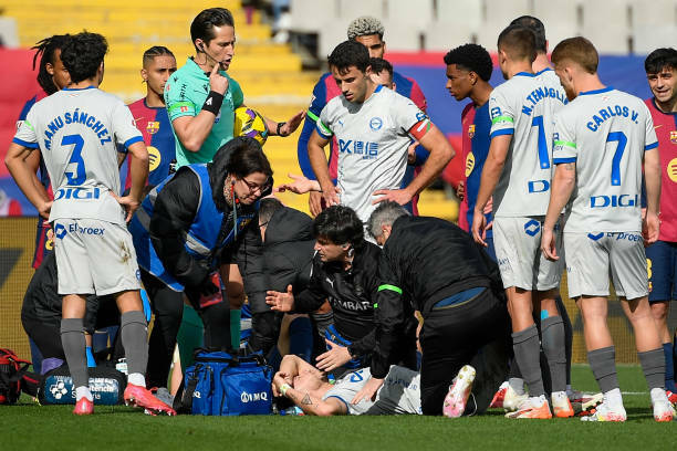 Гави поднялся и покинул поле самостоятельно, а вот игрока «Алавеса» с поля забирали на носилках.
