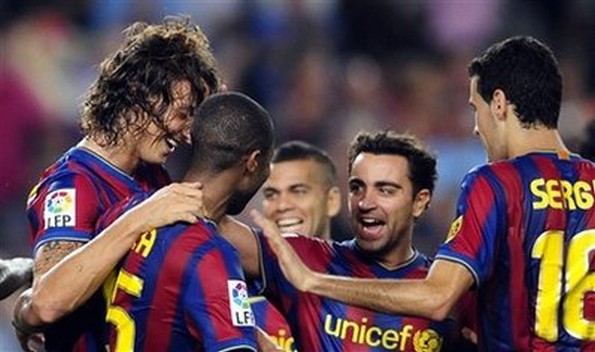 «Барселона»: Вальдес, Дани Алвеш, Пике (Фонтас, 84), Пуйоль, Максвелл (Абидаль, 57), Кейта, Хави, Бускетс, Педрито, Кркич (Жеффрен, 80), Ибрагимович