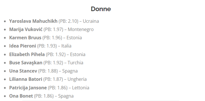 - Элизабет Пихела (PB: 1,92) – Эстония