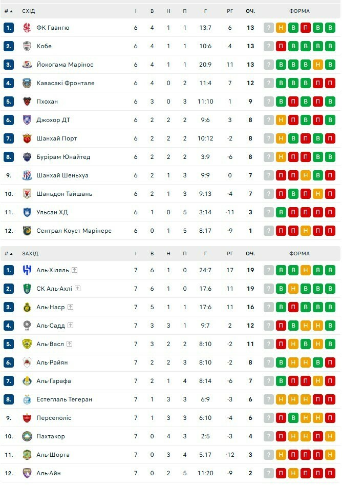 Саудовские команды Аль-Хиляль и Аль-Ахли набрали по 19 очков из 21 и возглавляют Западную зону.