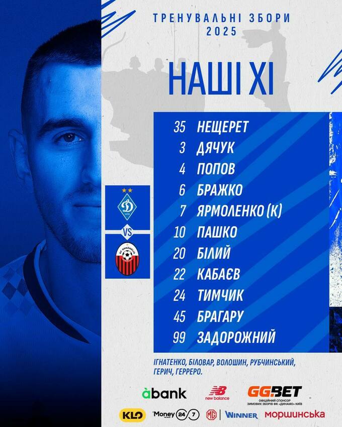 «Динамо»: Нещерет, Дячук, Попов, Бражко, Ярмоленко, Пашко, Белый, Кабаев, Тымчик, Брагару, Задорожный.
