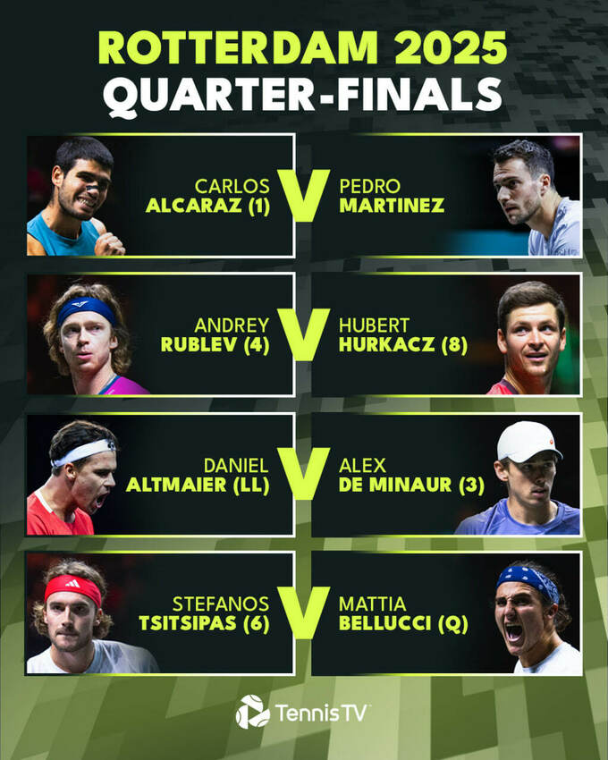 Еще два четвертьфинальных противостояния: Андрей Рублев vs Хуберт Хуркач, Стефанос Циципас vs Маттиа Беллуччи.