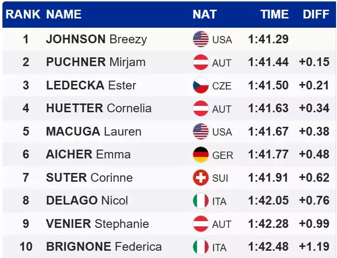Вне топ-10 скоростного спуска оказались легендарная Линдси Вонн и звездная итальянка Софья Годжа.