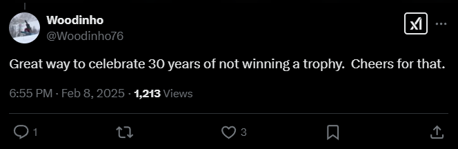 Woodinho: «Отличный способ отпраздновать 30 лет отсутствия трофеев. Большое спасибо за это».