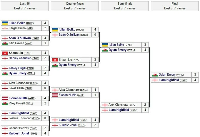Обновлено. Победителем турнира Q Tour 7 стал Лиам Хайдфилд из Англии, победив в финале Дилана Эмери из Уэльса (4:3).