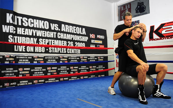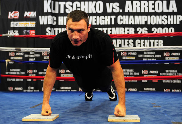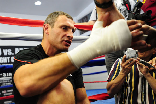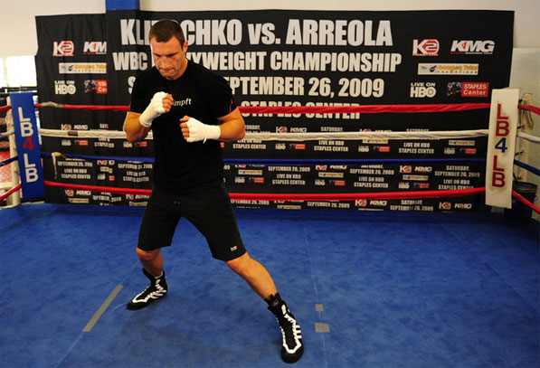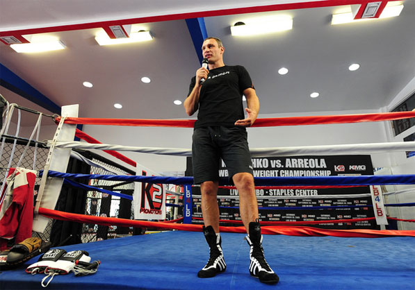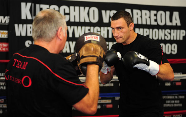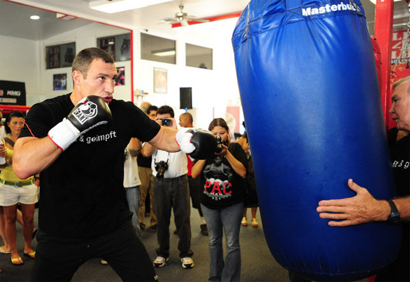 Сегодня Виталий Кличко провел открытую тренировку в зале Pound4Pound (Лос-Анджелес). До боя Виталия с Крисом Арреолой остается чуть больше трех недель.