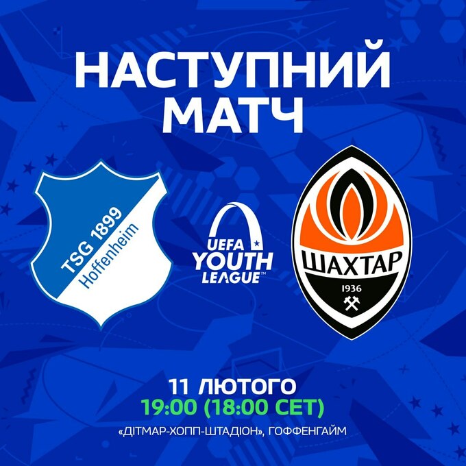 Донецкий Шахтер U-19 будет играть на выезде против немецкого Хоффенхайма U-19.