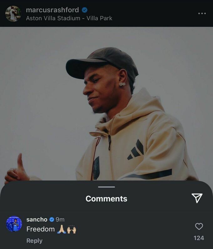 Игрок лондонского «Челси» Джейдон Санчо в социальной сети Instagram отреагировал на дебютный матч бывшего партнера Маркуса Рэшфорда за «Астон Виллу».