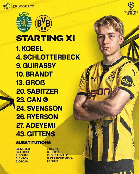 Известны стартовые составы на матч Спортинг – Боруссия Дортмунд