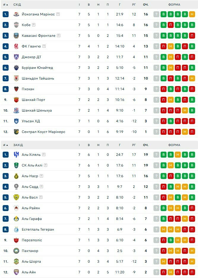 Саудовские команды Аль-Хиляль и Аль-Ахли набрали по 19 очков из 21 и возглавляют Западную зону.